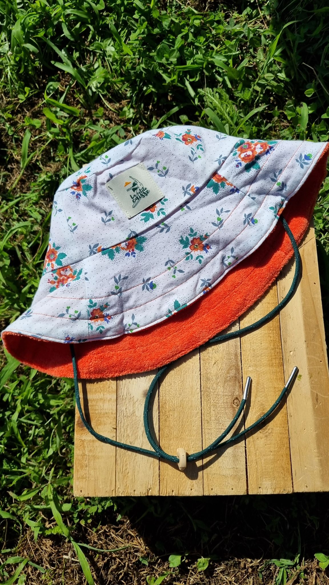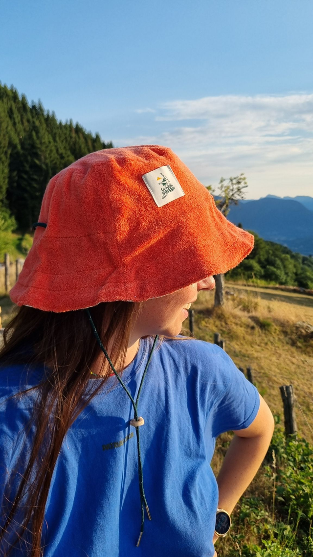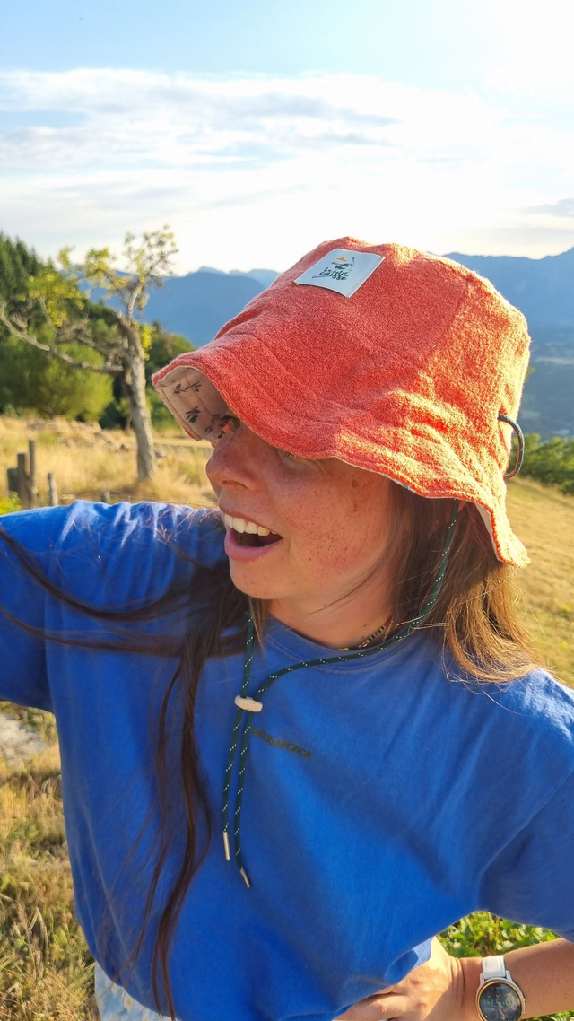 Chaque bob est cousu à la main à partir de tissus de seconde main soigneusement chinés. Et maintenant, il est pimpé d’un cordon réglable inspiré de mes polaires : pour résister au vent, à la rando, au vélo, ou à la sieste.