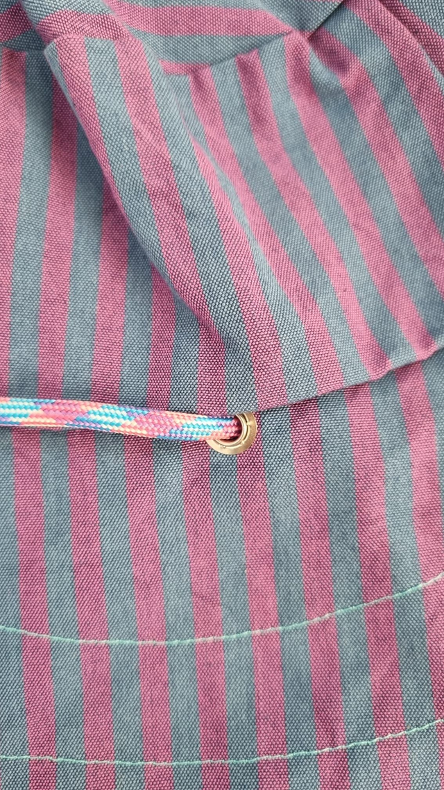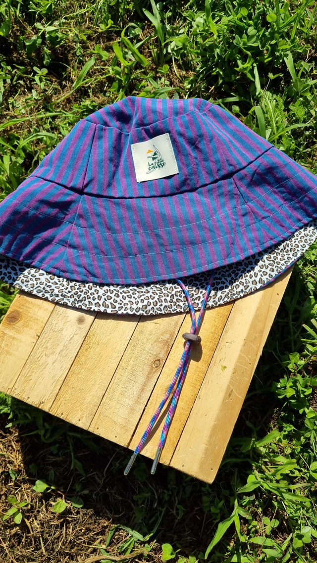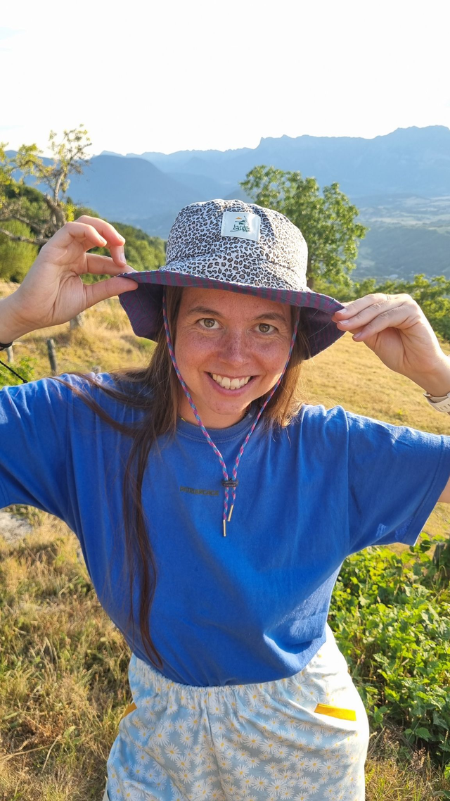 Chaque bob est cousu à la main à partir de tissus de seconde main soigneusement chinés. Et maintenant, il est pimpé d’un cordon réglable inspiré de mes polaires : pour résister au vent, à la rando, au vélo, ou à la sieste.