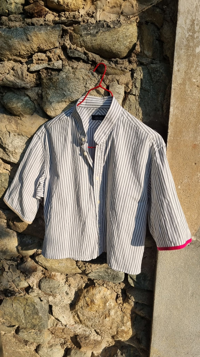 Chaque chemise est une ancienne chemise homme chinée, transformée et raccourcie pour lui donner une seconde vie pleine de peps ✂️