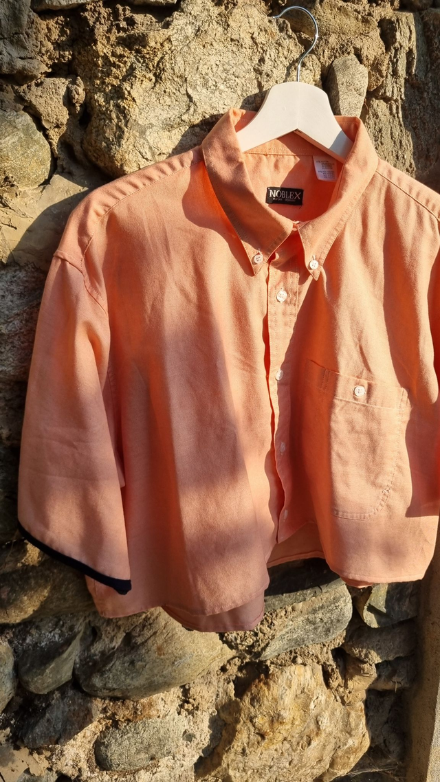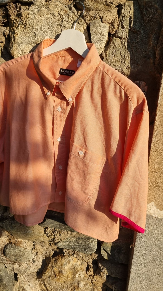 Chaque chemise est une ancienne chemise homme chinée, transformée et raccourcie pour lui donner une seconde vie pleine de peps ✂️
