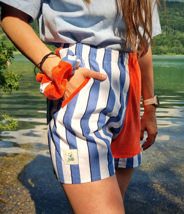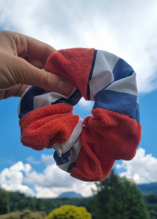 Chaque chouchou est unique et confectionné à partir des chutes de tissu issues de la création des shorts upcyclés : rien ne se perd, tout se transforme.