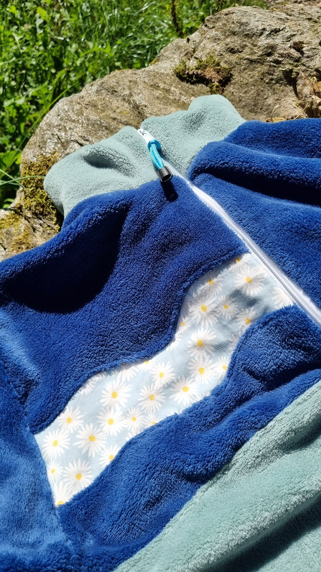 Ce polaire est confectionné à partir de tissus de stocks dormants (fin de rouleaux) et/ou de tissus chinés.