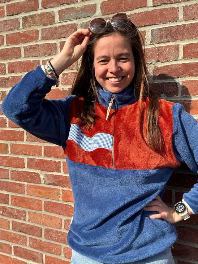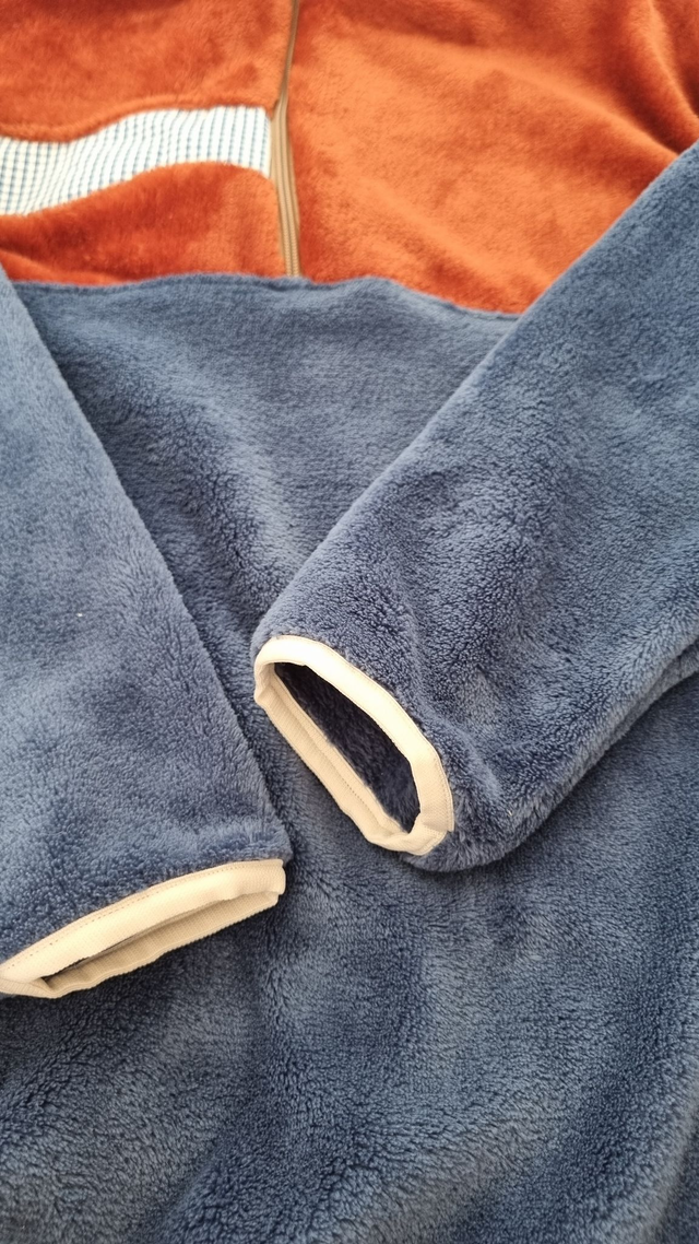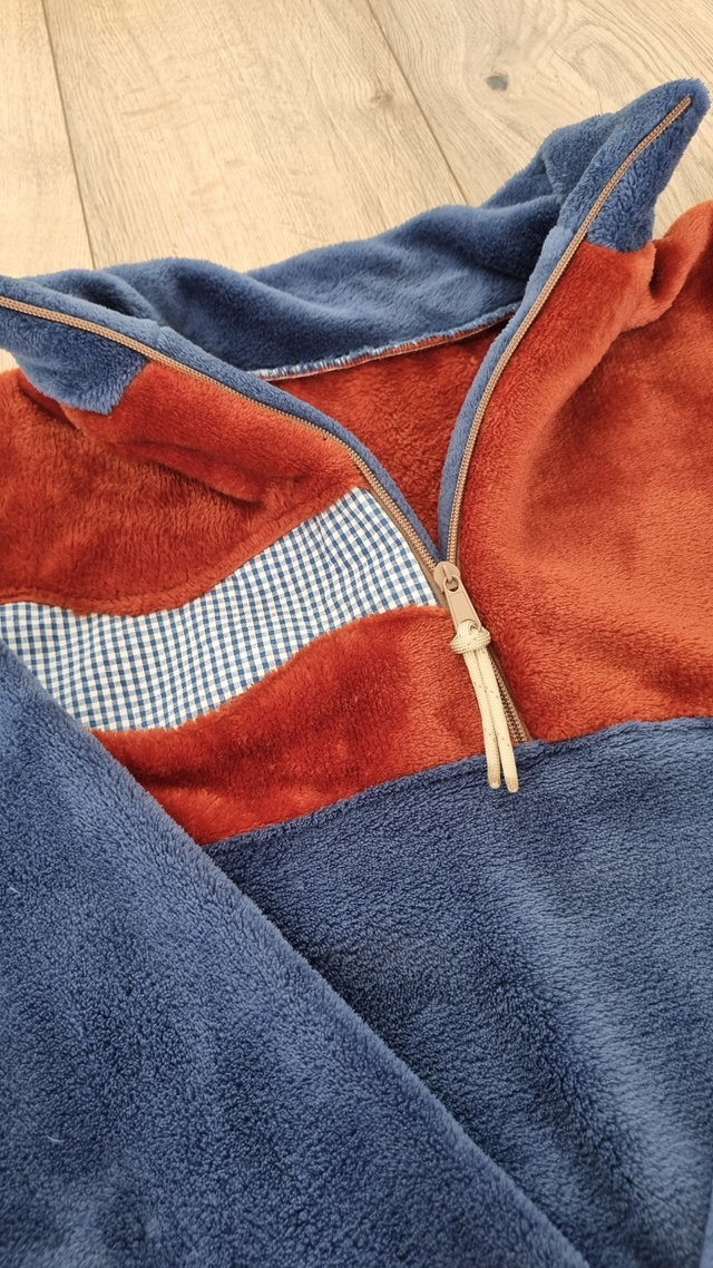 Ce polaire est confectionné à partir de tissus de stocks dormants (fin de rouleaux) et/ou de tissus chinés.
