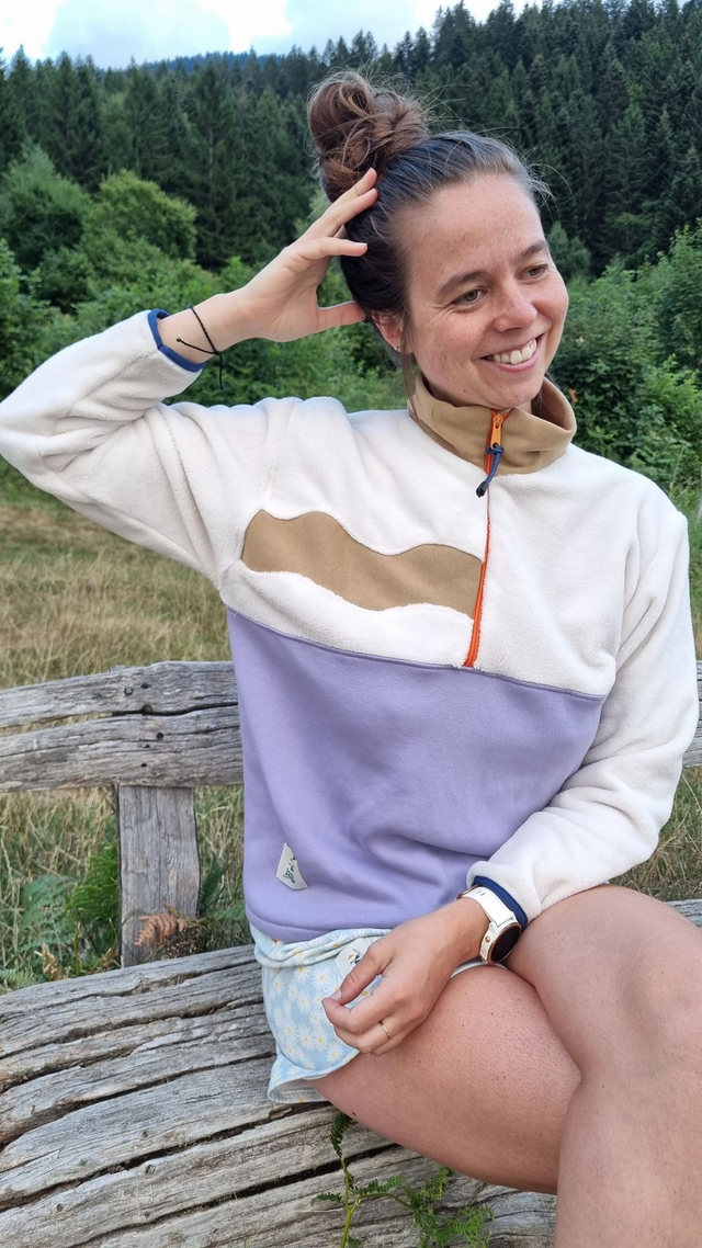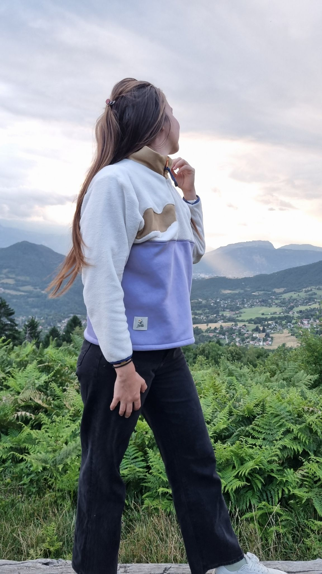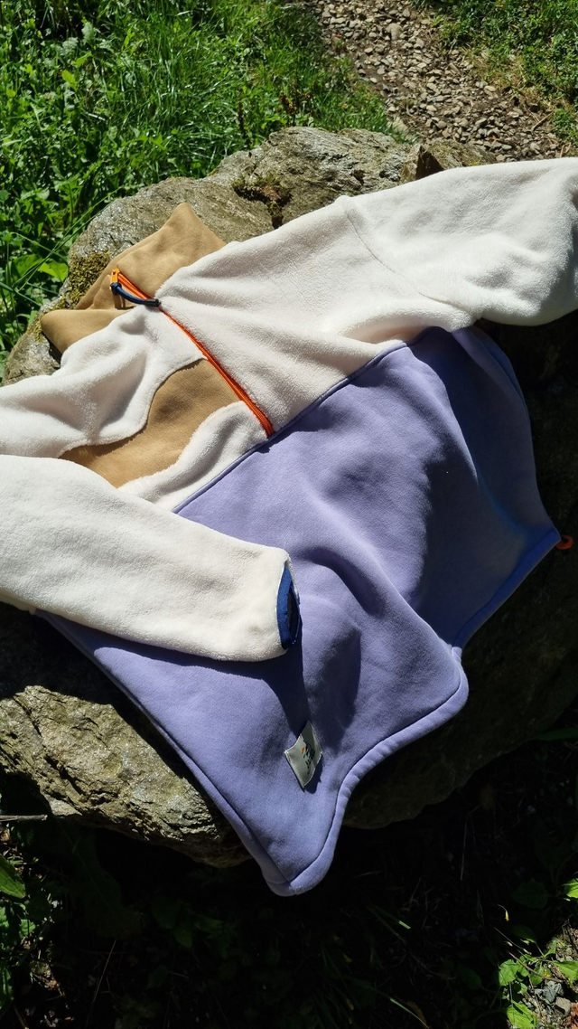 Ce polaire est confectionné à partir de tissus de stocks dormants (fin de rouleaux) et/ou de tissus chinés.