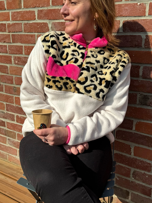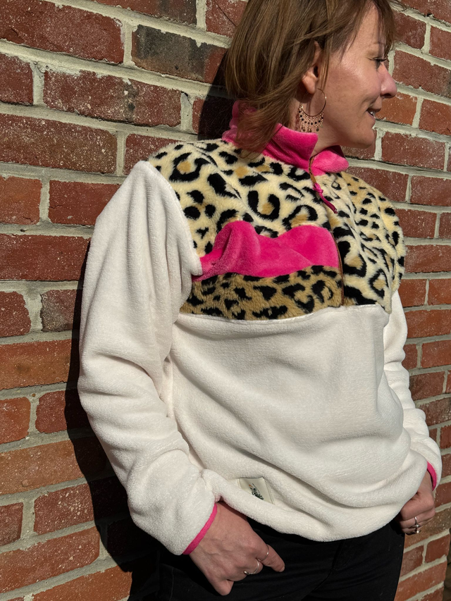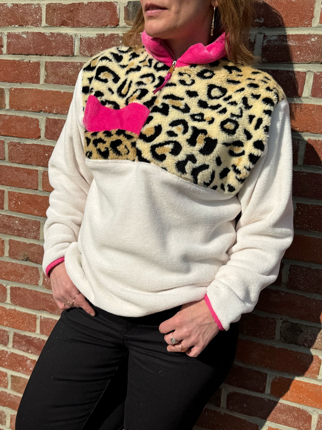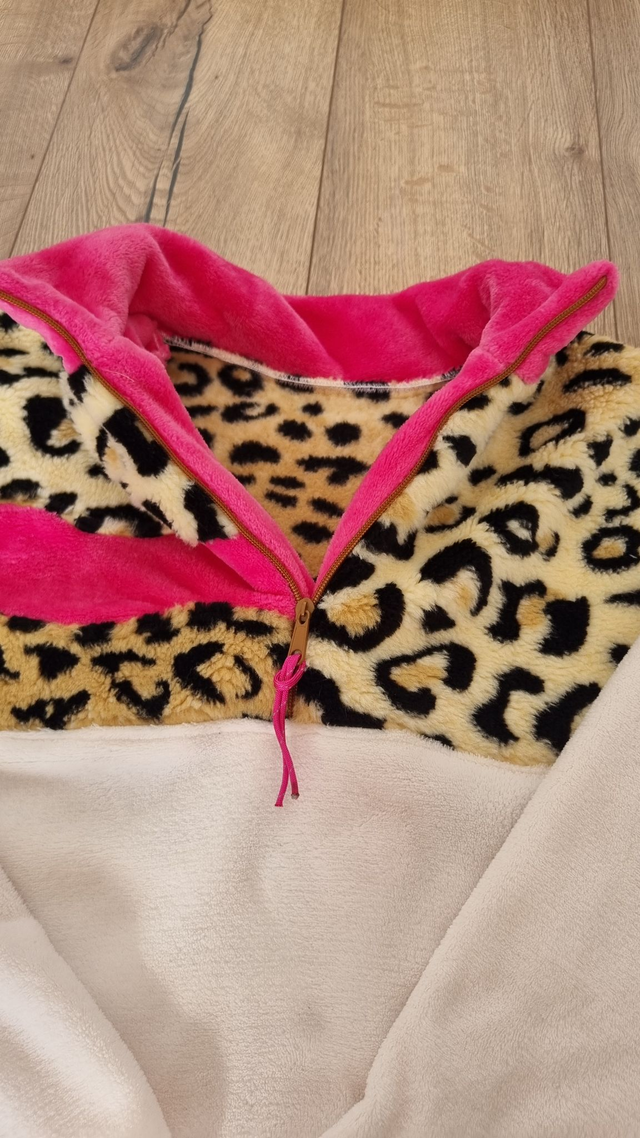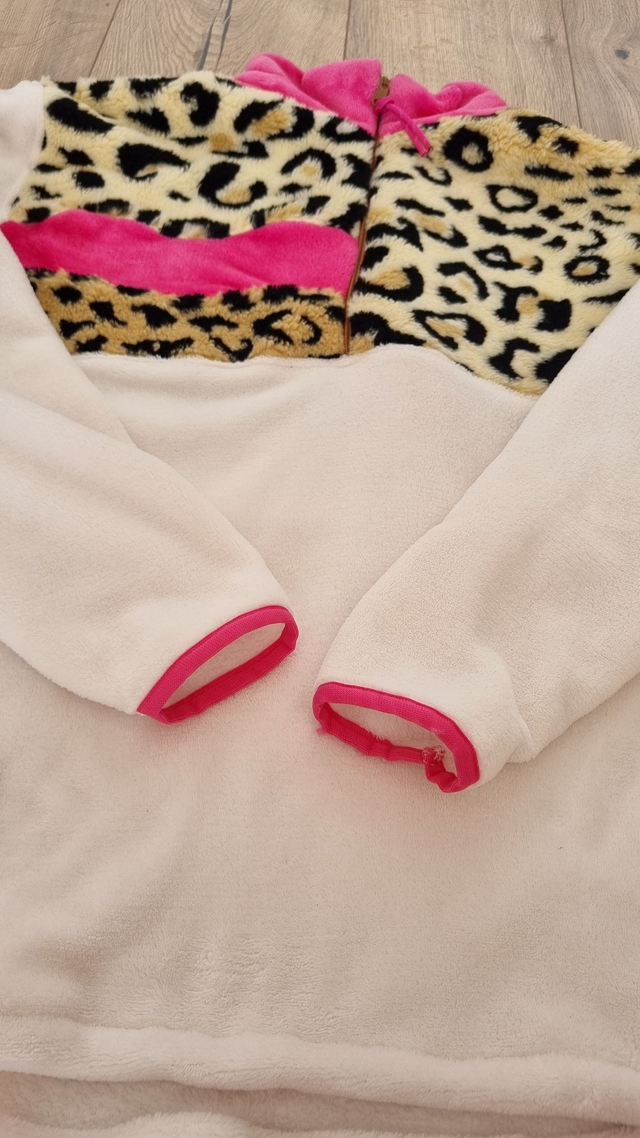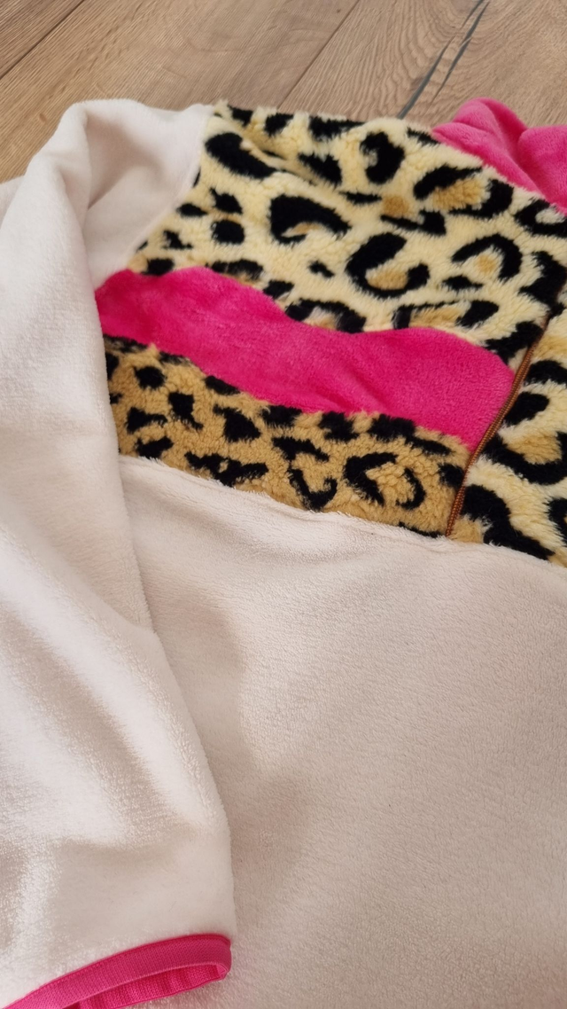 🌸Polaire écru, léopard et rose